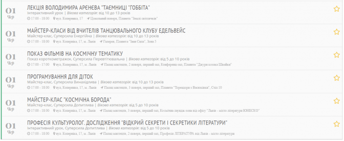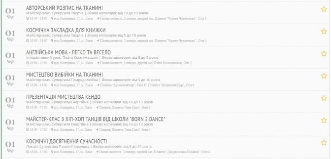 · майстер-класи від Астрономічного товариства.