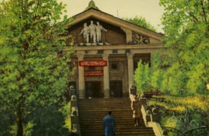 Кінотеатр «Дружба» з глядацьким залом на 300 місць збудований у 1952 р. за типовим проектом у стилі т.зв. сталінського ампіру. Автор проекту прив’язки – архітектор Станіслав Соколов. Будинок розмістився праворуч від входу у Парку культури та відпочинку ім. Б. Хмельницького. Вирішення головного фасаду кінотеатру перекликається з архітектурою вхідної аркади до парку. Пізніше, у 1950-х рр., на карнизі фасаду кінотеатру був встановлений неоновий напис «Кінотеатр».