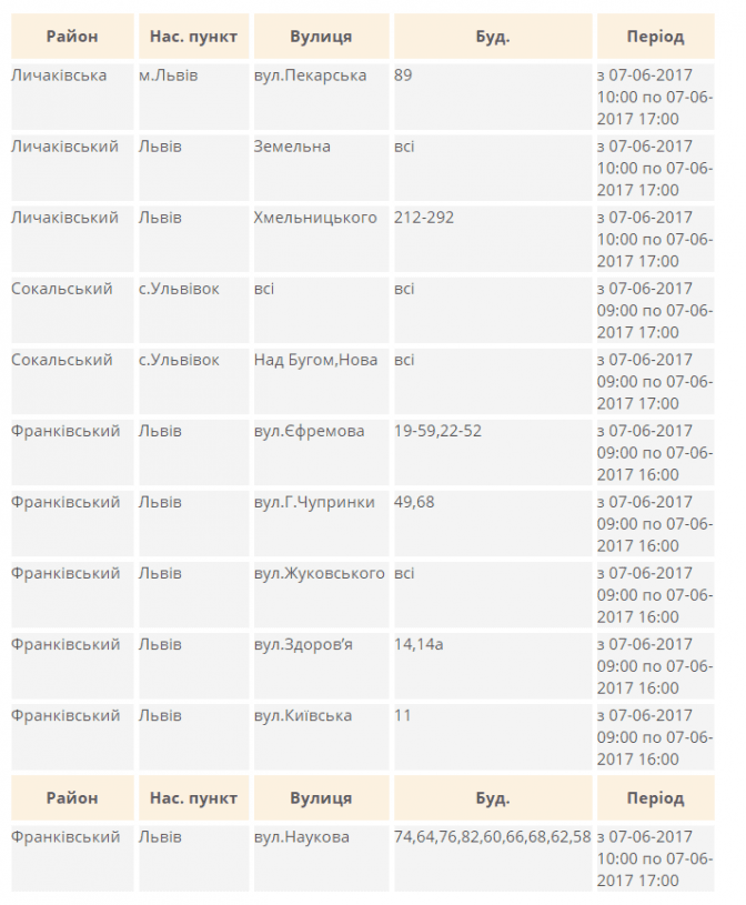 Де у Львові завтра не буде світла. Перелік адрес