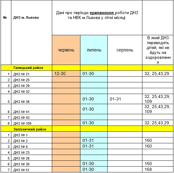 «Станом на 25-те травня 2017-го року усі керівники ДНЗ провели моніторинг відвідуваності дошкільників у літній період, провели бесіди з батьками вихованців та погодили графіки прийому дітей в сусідніх дошкільних закладах. Старші медсестри кожного дошкільного закладу підготували пакети документів для тимчасового переводу дітей в сусідні ДНЗ», – зазначили в управлінні освіти Львівської міської ради.