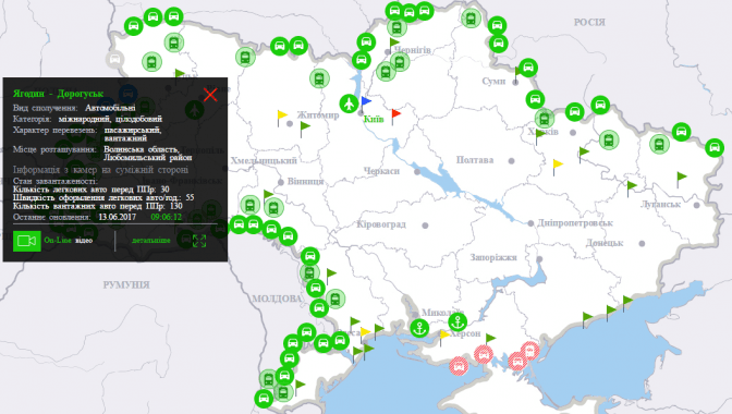 Українці, які планують перетинати кордон, можуть переглянути інформацію про завантаженість пунктів пропуску на інтерактивній карті, а також переглянути онлайн-відео в режимі реального часу. Про це повідомляє Державна прикордонна служба України.