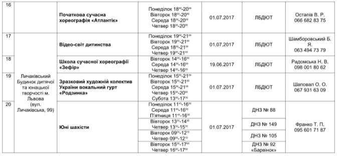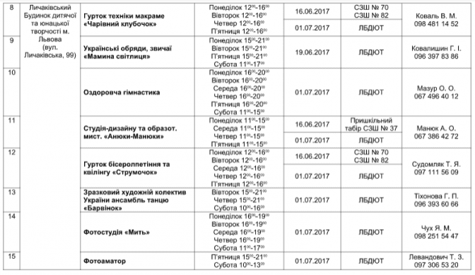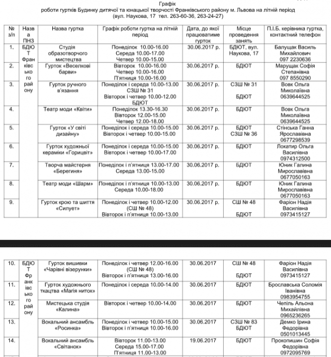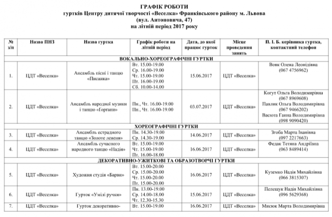 Серед найбільш розповсюджених напрямків гуртків – малювання, танці, декоративно-прикладне мистецтво, іноземна мова, програмування, футбол, настільний теніс, єдиноборства, туризм. Повний перелік гуртків у районах Львова надали в управлінні освіти міської ради у відповідь на інформаційний запит Тvoemisto.tv.