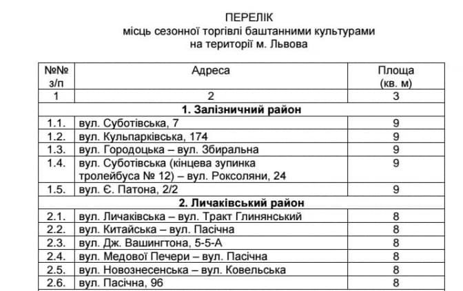 Де у Львові можна буде торгувати кавунами та динями. Перелік