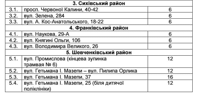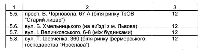 Як випливає з тексту рішення, перелік місць залишився аналогічним до минулорічного.
