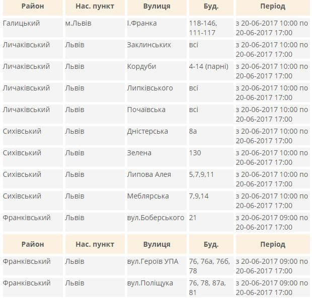 Де у Львові завтра не буде світла. Перелік адрес
