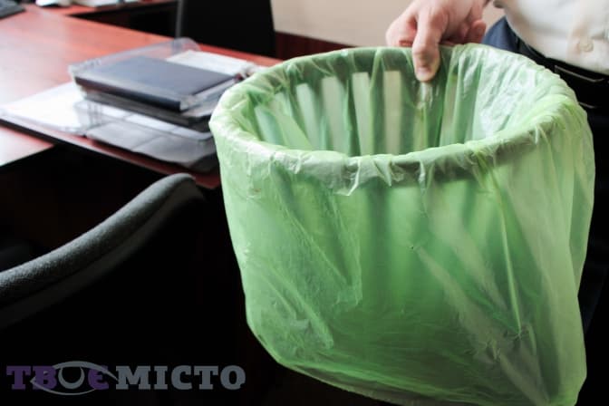 У кожному кабінеті є кілька сміттєвих кошиків для змішаного сміття. Туди викидають органічні відходи, які перегнивають найшвидше. Використовують спеціальні біопакети, які розкладаються упродовж трьох років.