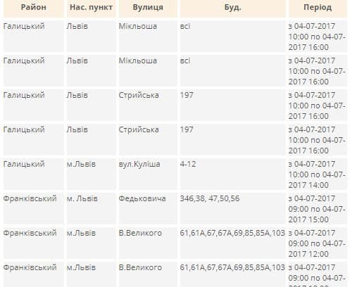 Завтра, 4-го липня, світло вимикатимуть в Галицькому та Франківському районах: