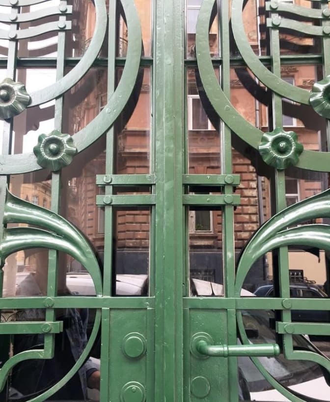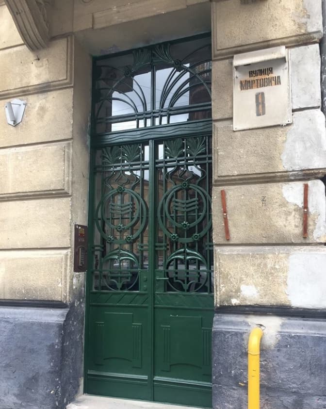 Основні роботи на вул. Мартовича, 8 полягали у виготовленні втрачених декоративних елементів та відновленні функціональності брами. Щоб повернути дверним полотнам автентичний вигляд, їх покрили фарбою і встановили за металевими решітками скляні шиби, які легко можна відкрити і помити зсередини.