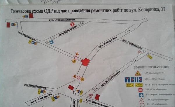 Обмежать рух через ремонт каналізаційного випуску будинку на вул. Коперника, 37. Комунальники обіцяють завершити роботи до 20:00 до завтра, 21 липня.