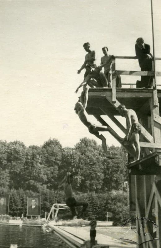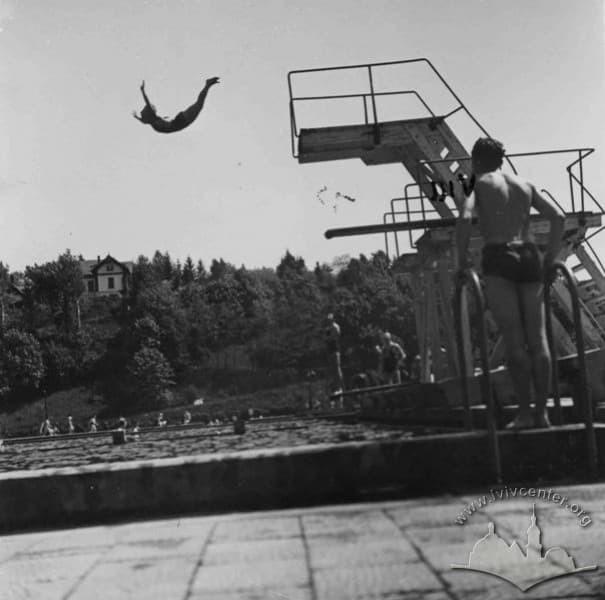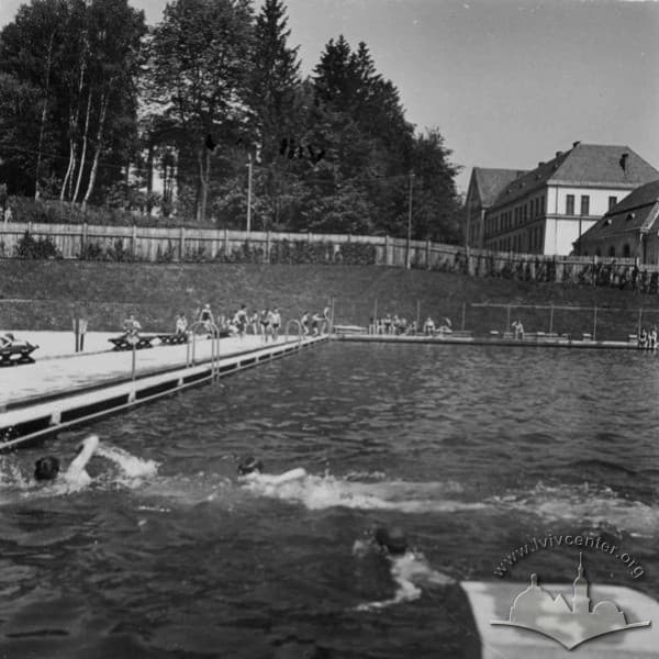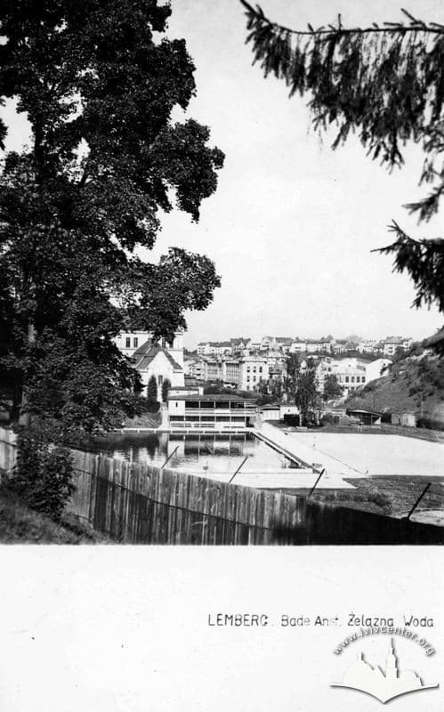 Перший міський відкритий басейн «Залізна вода» при вул. Снопківській збудований у 1933–1934 рр. за проектом архітектора Тадеуша Карасінського. Після 1945 р. басейн реконструювали, створивши на його базі спортивний комплекс «Динамо».