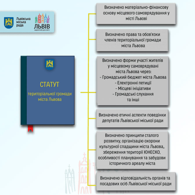 Статут територіальної громади – це свого роду конституція міста. Документ закладає рамки і принципи взаємодії громади міста із органами влади, визначає засади їхньої роботи.