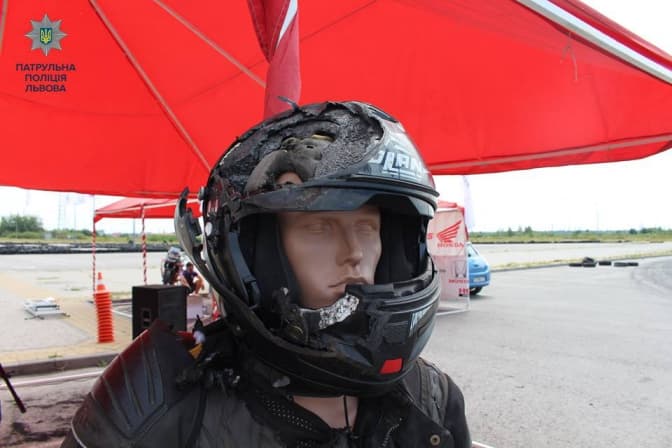 Також на виставці представили розбиті двоколісні, які пережили аварії, та екіпірування, яке врятувало життя мотоцикліста.