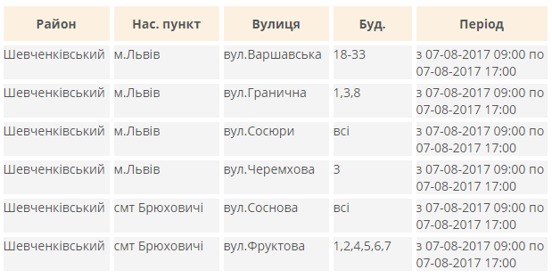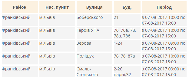 Відключення електроенергії заплановані в Шевченківському, Сихівському, Личаківському та Франківському районах Львова, інформує ПРАТ «Львівобленерго».