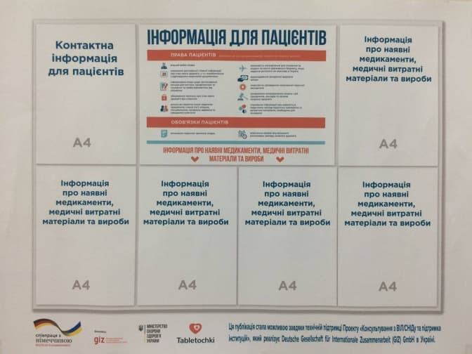 Наказ №459 зобов’язує кожен державний та комунальний заклад охорони здоров’я розміщувати плакати з інформацією щодо наявності лікарських засобів, витратних матеріалів, медичних виробів та харчових продуктів для спеціального дієтичного споживання в кожному відділенні, де перебувають на стаціонарному лікуванні пацієнти, а також біля входу в заклад. Плакати мають бути великого розміру й висіти в зручному та доступному місці. Щотижня інформація на плакатах повинна оновлюватися, – роз’яснюють в МОЗ.