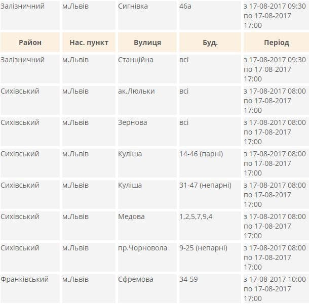 Де у Львові сьогодні не буде світла. Перелік адрес