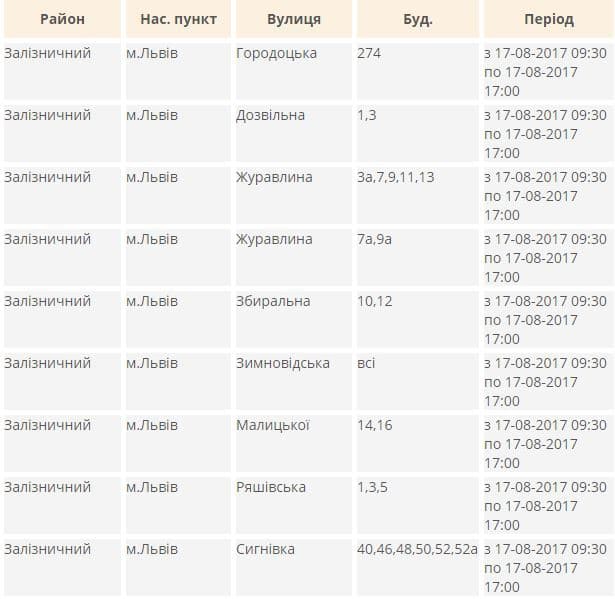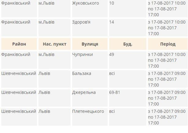 17-го серпня відбудуться планові відключення через ремонтні роботи.