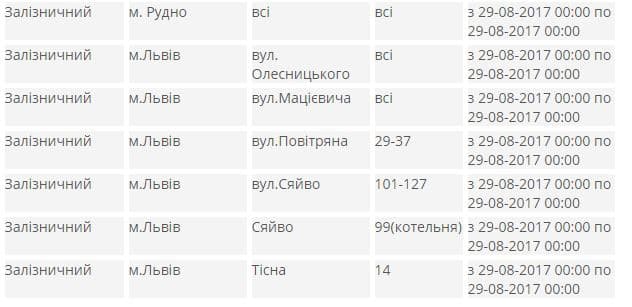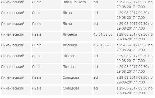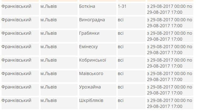 В яких районах Львова не буде світла. Адреси