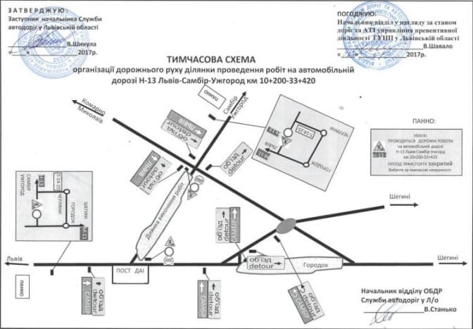 Ремонт проводять на ділянці км 10+200 – км 33+420 (пост ДАІ – перехрестя з а/д Т-14-25 Миколаїв - Городок - Бібрка - с. Крижова).