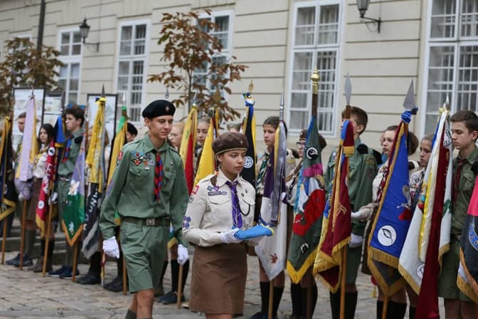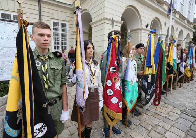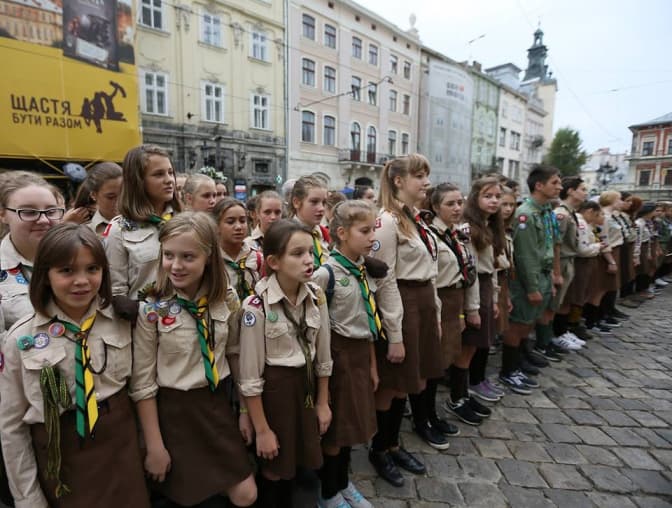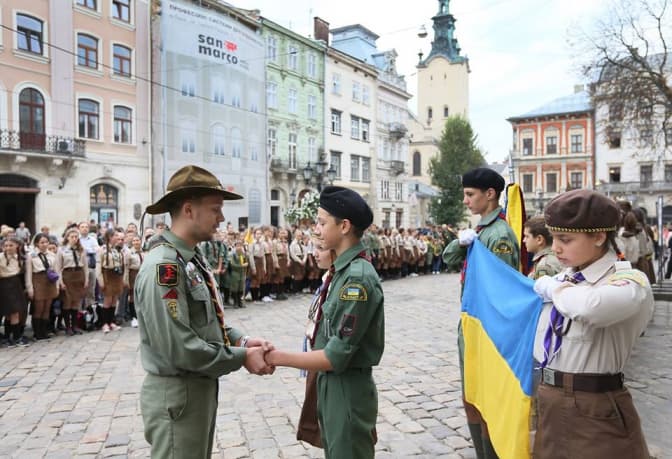 Програма святкування пластового року розпочалась у Гарнізонному храмі св. ап. Петра і Павла. Після молебню, на площі Ринок пластунів привітали міський голова Львова та голова ЛОДА. Також відбулося посвячення «новачків»: курені Станиці Львів Пласту Національної Скаутської Організації України розгорнули свої стяги.