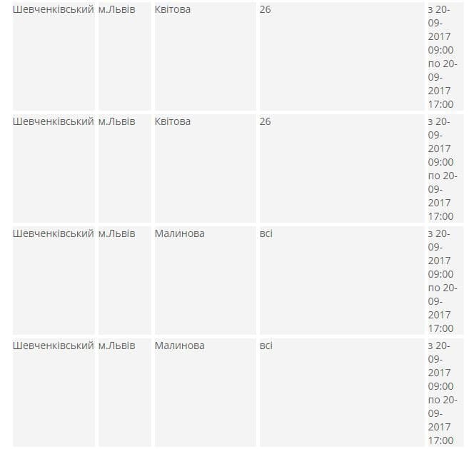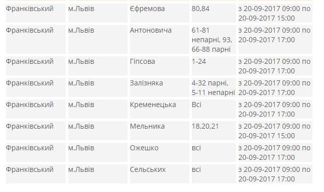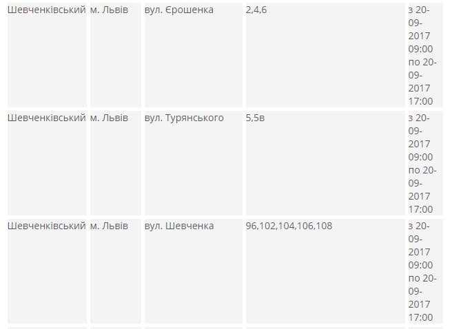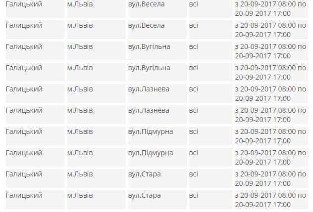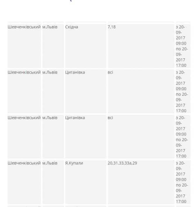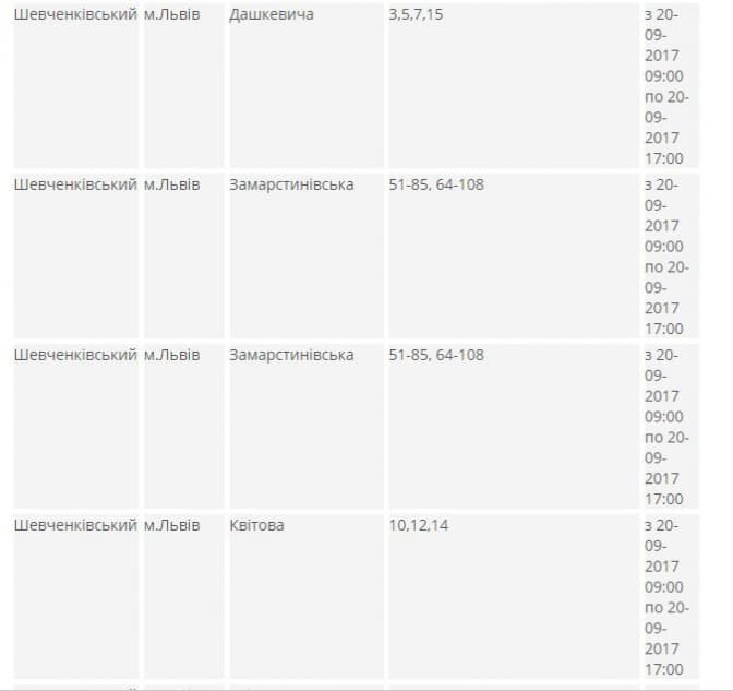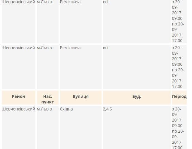 ПАТ "Львівобленерго" запланувало відімкнення у кількох районах Львова. Список перевищує кілька десятків вулиць.