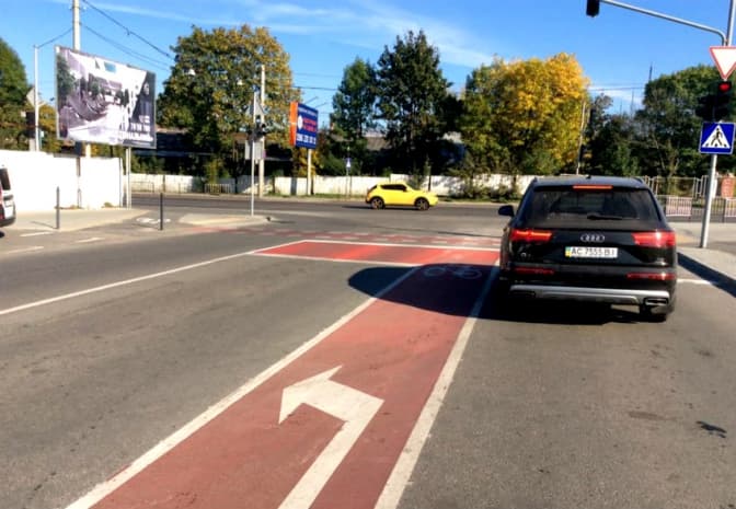 «Велосипедисти розташовуються перед автомобілями і перетинають перехрестя першими. Водії чітко бачать велосипедистів і розуміють їхні наміри, велосипедисти не з'являються несподівано, це сприяє безпечному перетину перехрестя», – зазначив Олег Шмід.