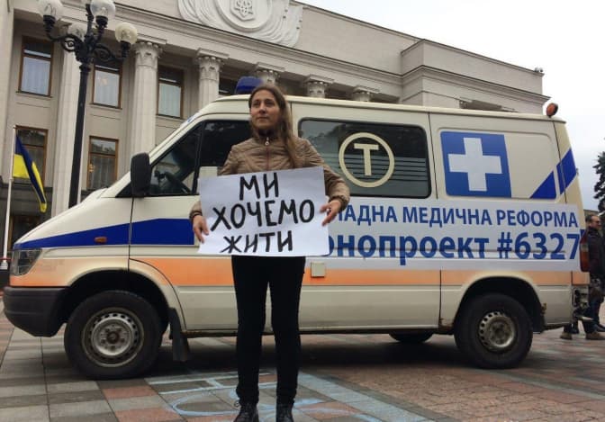 «Законопроекти №6327 і №6604, які зараз знаходяться в парламенті, покликані зробити важливу річ – держава має платити за послуги, а не за ліжкомісця у лікарнях», – говорить одна з організаторок акції, виконавча директорка благодійного фонду «Пацієнти України» Ольга Стефанишина.