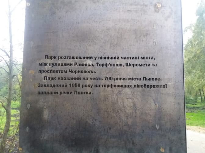 У львівському парку «700-річчя Львова» облаштували алеї та металеву конструкцію, яка буде служити брамою та перголою для витих рослин. Також на металевій конструкції зробили гравірування з інформацією про парк, повідомляє ГО «Зручне місто» на своїй сторінці в мережі Facebook.