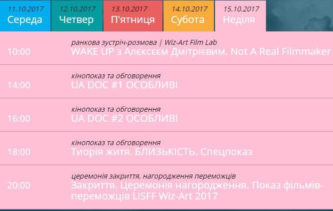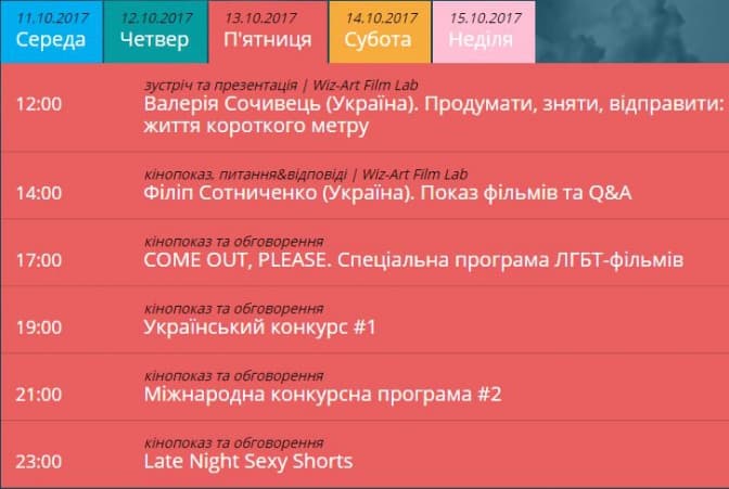 У Львові з 11-го по 15-те жовтня пройде Міжнародний фестиваль короткометражних фільмів Wiz-Art. Фестиваль в Україні проводять з 2008-го року. Щороку на фестивалі глядачам демонструють 100 новинок серед українського та іноземного короткого метру.