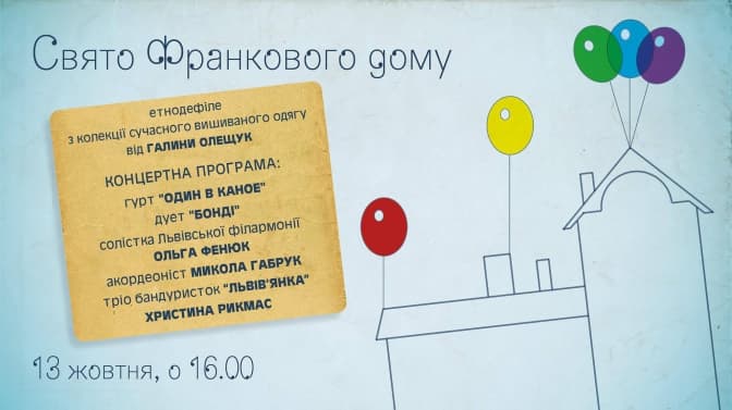 Львів’ян запрошують послухати концертну програму та подивитися етнодефіле – демонстрацію ексклюзивних сучасних вишиванок від майстрині Галини Олещук. Окрім того, пропонують долучитися до програми «Музей без бар'єрів» – встановлення пандуса біля входу до Дому Франка.