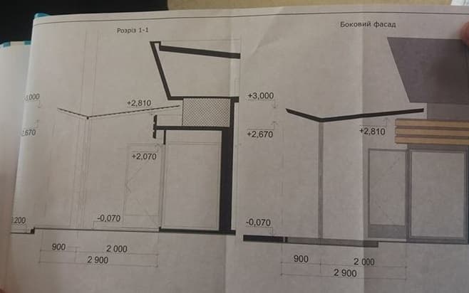Відстань, яку можуть займати стелажі з квітами на тротуарі, визначає ширина дверей на кресленні: