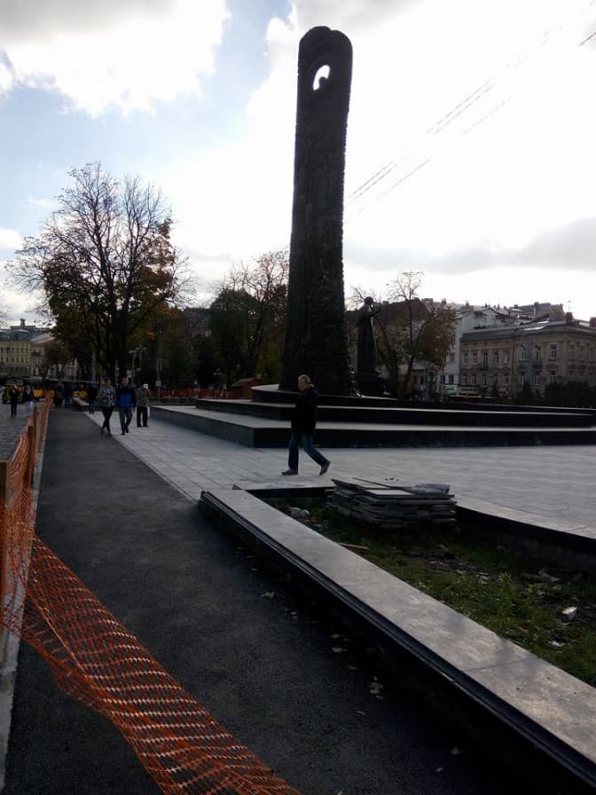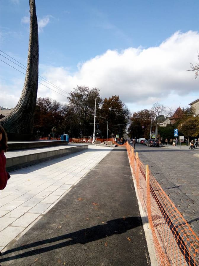 У Львові триває реставрація площі біля пам'ятника Тарасу Шевченку на проспекті Свободи. У рамках реставрації біля площі облаштували велодоріжку.