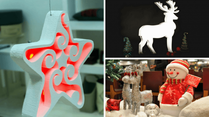 - Новорічні 3д фігури або казкові персонажі. Звучить мудро, та все просто - це ідеться про можливість замовити виготовлення щось на кшталт об'ємного сніговика чи маленької ялиночки, елементів для гірлянд або, навіть, ексклюзивні іграшки для ялинки. Матеріали використовуються прості та доступні: пінопласт, фанера, МДФ, текстиль та папір.