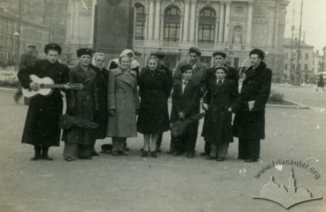 Молоді музиканти з Олеська у Львові перед оперним театром.