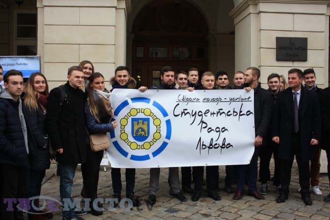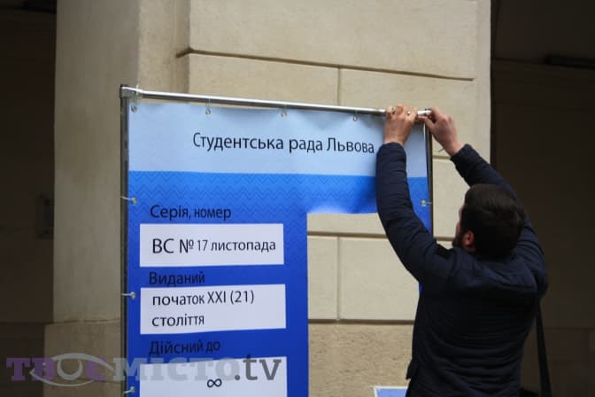 До Дня студента Студентська рада Львова одягнула левів біля ратуші у мантії. Біля левів встановили інсталяцію студентського квитка, біля якої фотографувалися усі охочі.