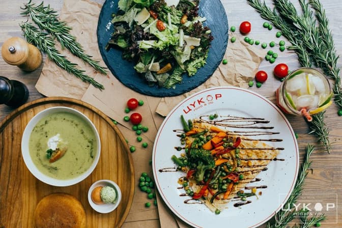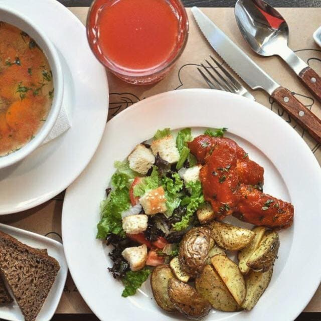 Що: Цей заклад пропонує два варіанти ланчу – вегетаріанський та класичний. Обидва ситні й дуже нетипові: де це на обід до супу подають млинці?