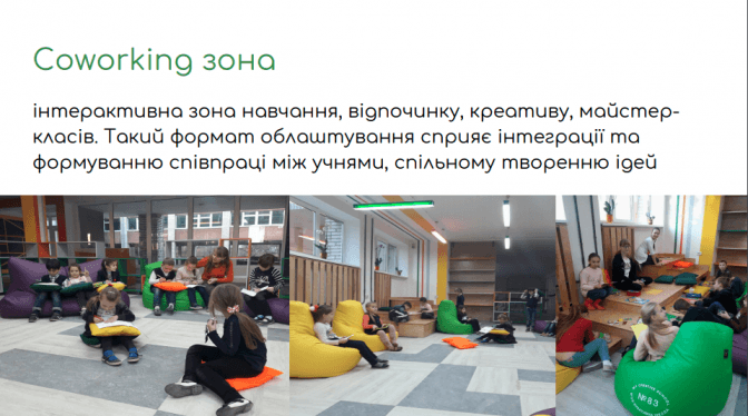 Окрім того, в перспективі розвитку «розумного мікрорайону» в місцевих школах мають відкритися коворкінг зони – місця для навчання та проведення часу школярів. Вони будуть оснащені нестандартними меблями, проекторами та звуковим обладнанням.