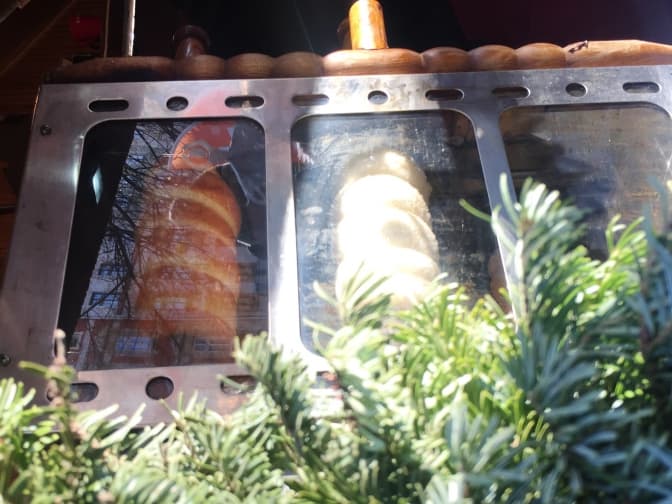 Національна випічка Угорщини та Чехії. Цікава назва та незвичний смак – солодке здобне дріжджове тісто у карамелі із різноманітними посипками. Ціна – від 40 грн. Приготування смаколика займає трохи більше 10 хвилин. Далеко відходити не радимо, адже за процесом цікаво спостерігати.