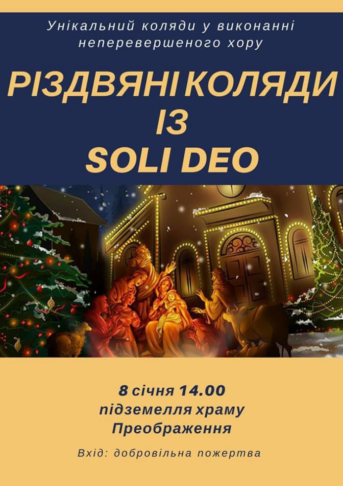 Львівян та всіх охочих запрошують до Преображенської церкви (вул. Краківська, 21) на різдвяні коляди у виконанні хору Soli Deo.