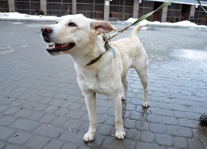 Алонсо. Метис лабрадора. Молодий, енергійний, перші базові команди навчається у нас, але надалі потребуватиме продовження занять із кінологом. Чудовий вірний друг.