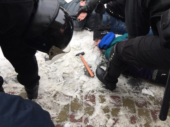 Проте перед стартом акцій під цирк стягнулось кілька десятків представників Нацполіції. Протестувальників на той момент було менше, ніж правоохоронців – вони стояли біля входу та роздавали людям інформаційні листівки. Через декілька хвилин після початку протесту на площі перед цирком з’явились невідомі особи, які кидали у сторону поліції та протестувальників димові шашки. Правоохоронці одразу затримали декількох осіб та тимчасово обмежили вхід до цирку для батьків із дітьми.