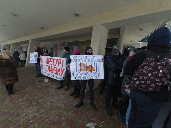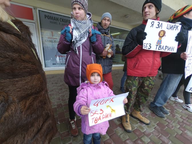На акції протесту проти використання тварин у циркових виставах вийшло близько тридцяти людей. Люди прийшли з плакатами, на яких були заклики: «Ні садизму», «Ні тваринам в цирку». При цьому правопорядок на мітингу забезпечувало близько півсотні представників поліції.