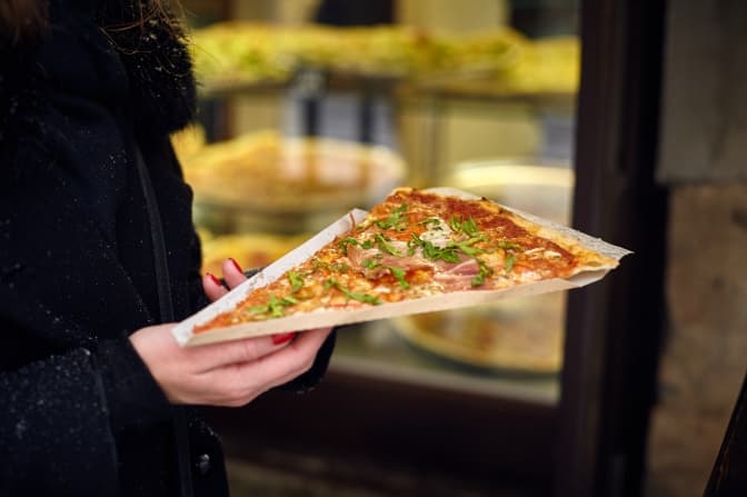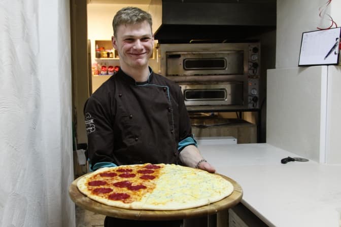 Засновники відразу вирішили, що робитимуть найбільшу піцу в місті – 55 см в діаметрі. Тут можна замовити шматок піци Прошуто, Капрічозе, Салямі, Папероні, тощо. Всі рецепти розробляли самі, дегустували з командою. Також є овочева та сирна піца, Кватро Формаджі, для тих хто не любить м'ясної. Віднедавна тут також можна замовити і смачні італійські млинці, тому кожен львів’янин зможе знайти щось собі до смаку.