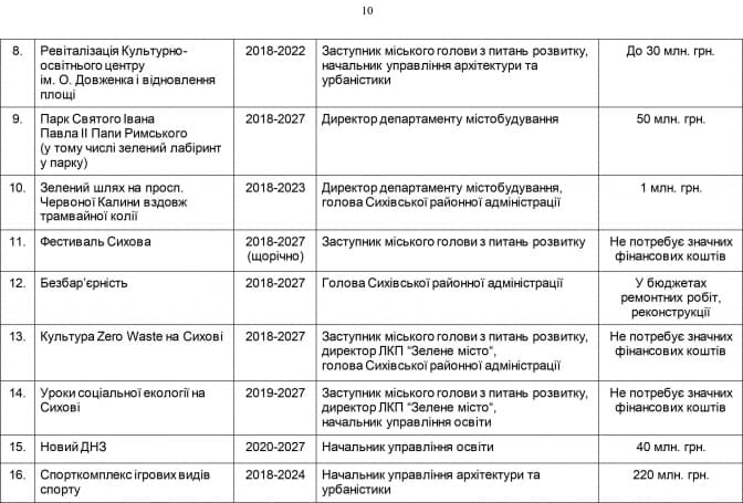 Подаємо перелік об’єктів, які можуть з’явитися на Сихові згідно з планами міської влади: