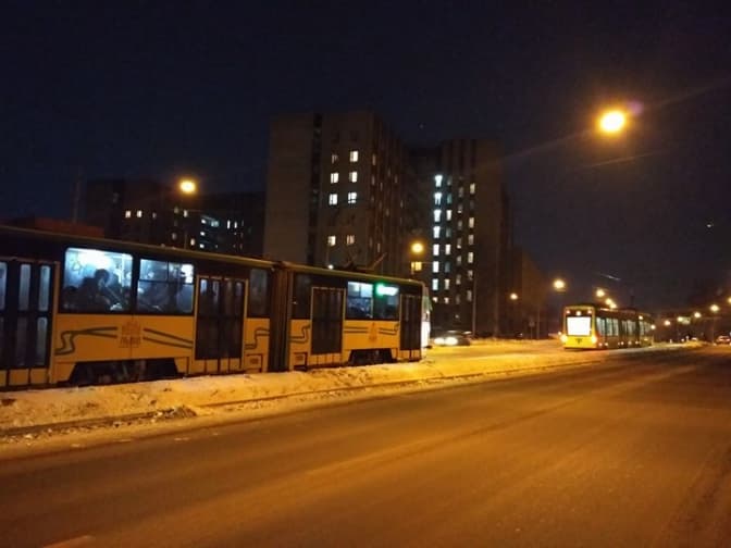 Причиною затору є поломка одного з вагонів на маршруті №8. Ускладнення для руху автотранспорту немає.