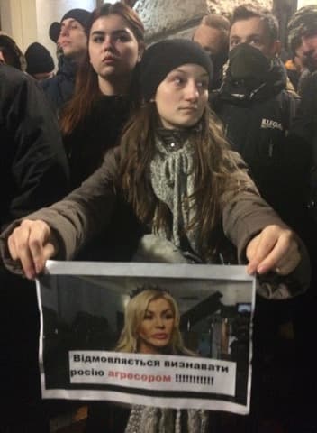 Учасники акції скандують «Слава Україні – Героям слава!» та тримають в руках фото Ірини Білик з назвами міст на Донбасі, де проводились бойові дії. Людей, які намагаються зайти в Оперний театр, активісти не пропускають. Біля Оперного театру також присутні працівники поліції.