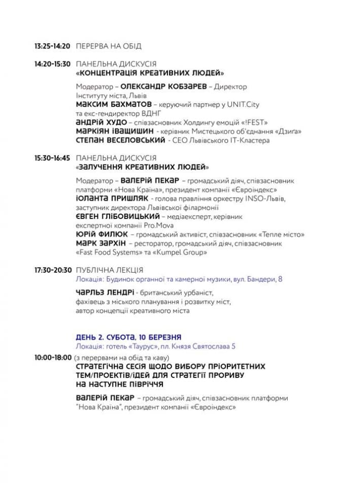 Спеціальний гість – Чарльз Лендрі – всесвітньо відомий британський фахівець з розвитку міст, автор книг з міського розвитку, серед них – книги «Креативне місто».