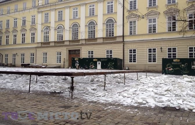 Сьогодні в центрі міста демонтували ковзанку, традиційно розташовану біля будівлі Львівської міської ради, повідомляє кореспондент Tvoevisto.tv.
