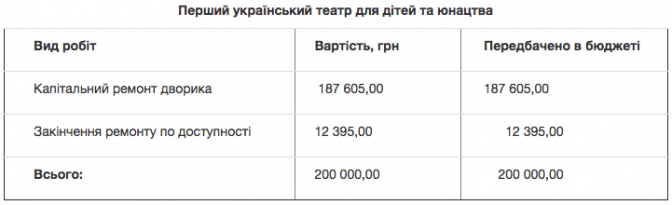 Капітальний ремонт Першого українського театру для дітей та юнацтва із врахуванням доступності для людей з інвалідністю знаходиться на завершальному етапі. Його завершення заплановано на квітень 2018 року.