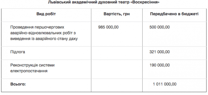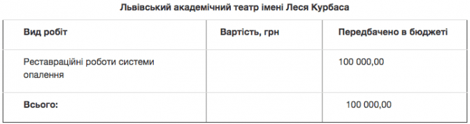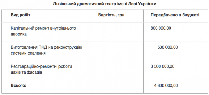 Протягом 2018 року ремонтні роботи проводитимуть в академічному духовному театрі «Воскресіння», Першому українському театрі для дітей та юнацтва, драматичному театрі ім. Лесі Українки, академічному театрі ім. Леся Курбаса.