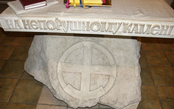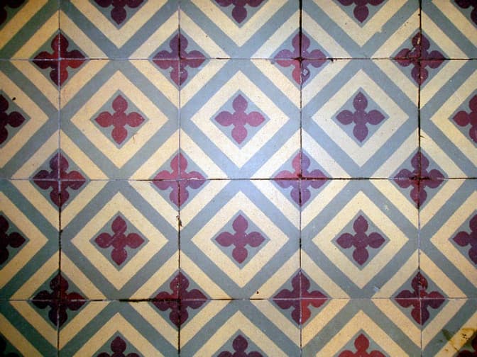 Керамічна плитка поч. 20 ст. в передсінку храму колишнього монастиря кармеліток босих на вулиці Генерала Чупринки, 70 у Львові. Втрачена